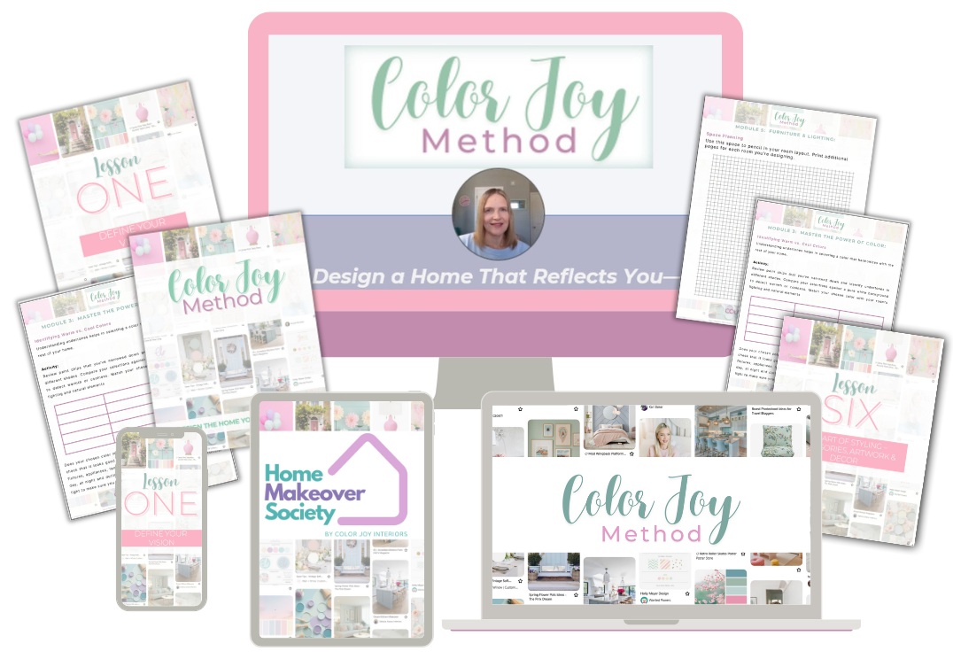 The Color Joy Method is your step-by-step online course that teaches you how to create a magazine-worthy room on a budget. It’s a structured system, using a series of video tutorials, structured exercises and tips guide you through envisioning your dream space, defining your style, mastering color, and pulling it all together – for a home you’ll truly love. And it's based on the methods I personally use with my own interior design clients!